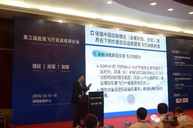 10月15日和16日,飞行学院党委副书记韩炜、飞行学院高年级年级组组长姚松坤以及两名学生代表赴深圳参加第三届航线飞行员训练研讨会。本次研讨会主题为“航线飞行员训练现状、改革、发展”,邀请到民航局原局长杨元元、民航局通用飞行标准处处长陈广承、民航局通用飞行标准处副处长韩光祖等多位领导就当前航线飞行员培养现状及最近政策进行解读。