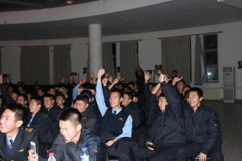 飞行学院分团委副书记孙文康,组织部部长罗力克,社会实践部部长魏海玉等学生干部出席比赛现场,为选手点评加油。