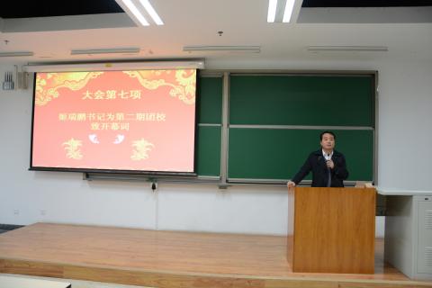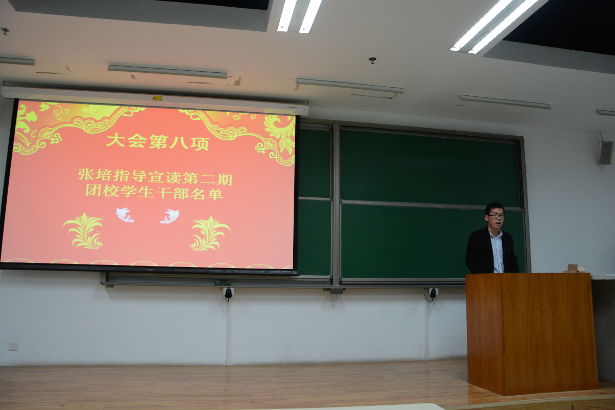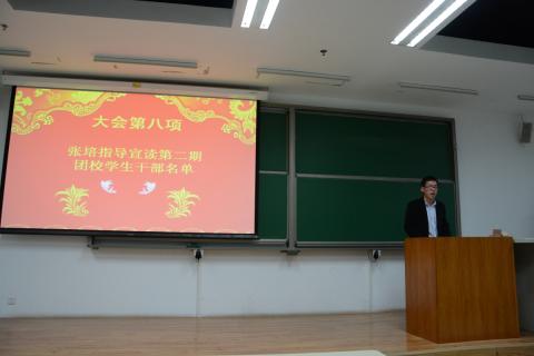 第一期团校秘书处播放了第一期团校视频,精彩的活动照片让大家回忆起团校生活的点点滴滴。第一期团校共有80名学员顺利结业。团校副校长兼秘书长张培指导从课程形式、课程安排、活动内容、需改进的地方等方面对第一期团校进行了总结。团校副秘书长姚松坤指导宣读了第一期优秀学生干部及优秀学员名单。