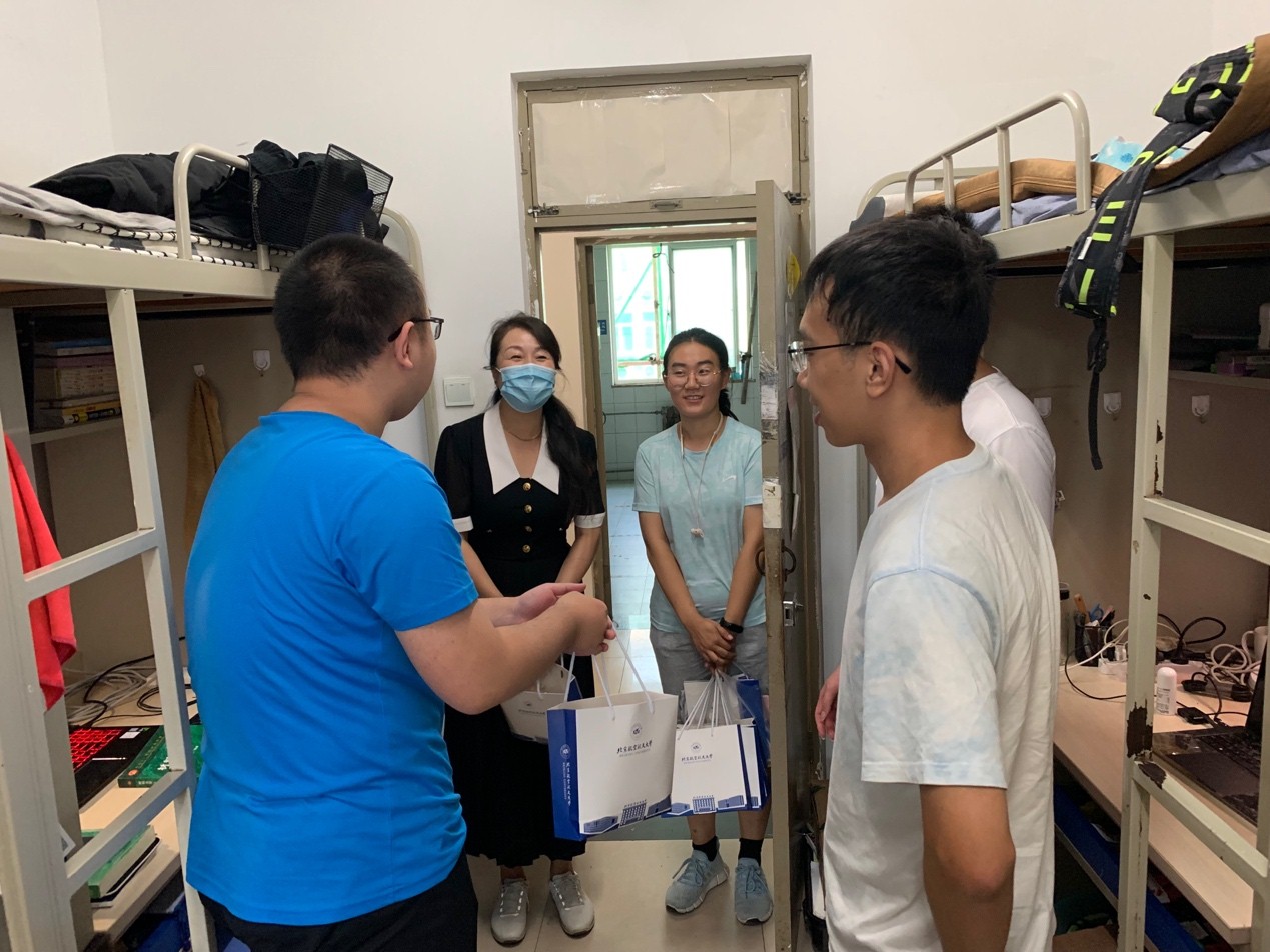 202298日下午,飞行学院党委书记朱颖和副书记谷萌到学生宿舍看望同学们。朱颖书记亲切地询问同学们从沙河校区搬迁到学院路校区后是否适应新环境,学习、生活有无遇到困难。同学们表示较为适应新环境,新学期会高质量完成好课业学习和科研实践。朱颖书记也嘱咐同学们绷紧疫情防控之“弦”、珍惜时光、刻苦学习,并为同学们送去了北航定制月饼,祝同学们中秋快乐。