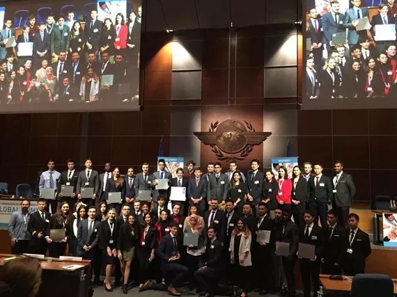 国际民航组织ICAO首届下一代航空专业人才NGAP全球峰会于2017年27-28日在加拿大蒙特利尔召开。北航飞行学院派出代表团参会并在首届ICAO-NGAP峰会上设立的大学生模拟联合国辩论赛ICAO-MODEL上喜获佳绩。六名参赛选手包括五名飞行技术专业的大四学生和一名交通运输管理与维修专业大四学生,他们分别是苗雨桐,李广越,郝帅,周天成,吴奕文,余厚石。其中苗雨桐,李广越,郝帅获得优胜奖。这是北航首次参与国际民航组织ICAO组织的国际性辩论赛并获得佳绩,也是飞行学院学生首次在国际舞台上与来自牛津大学、康考迪亚大学、法国国立民航大学及麦吉尔大学等20余所高校学生同台竞技,展现了北航飞院学子的风采。