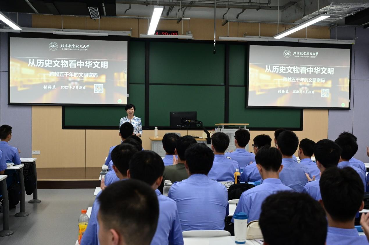 2025年5月21日,飞行学院邀请张海兰教授为我院学生开展了主题为“从历史文物看中华文明——跨越五千年的文明密码”的讲座。飞行学院2024级飞行技术专业全体学生参加。