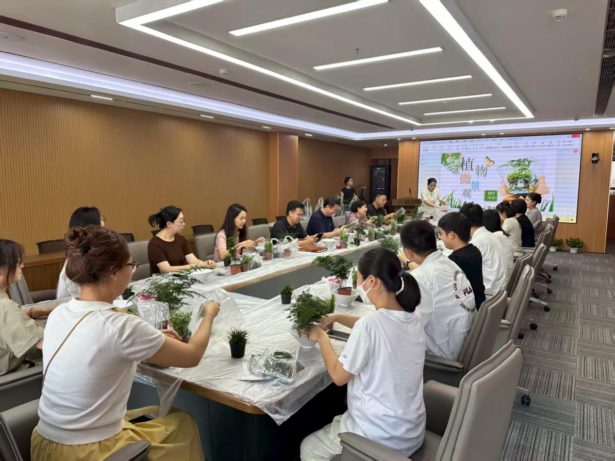 本次活动为DIY盆栽,教职工们分组协作,亲手挑选绿植、设计盆栽造型,并融入个人创意元素。活动尾声,教职工们展示了各自完成的盆栽作品。