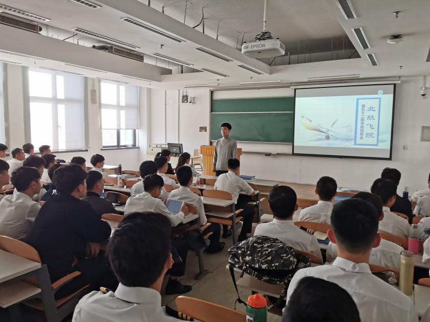 2019年11月13日,于沙河校区教5-401,飞行学院第52期考照班举行开班大班会。党政办主任丁瑶老师、高年级年级组长刘平海、高年级辅导员辛瑞玲,全体52期考照班参加本次大班会,另外还有巡查小组的老师听会。大班会由刘平海指导主持。