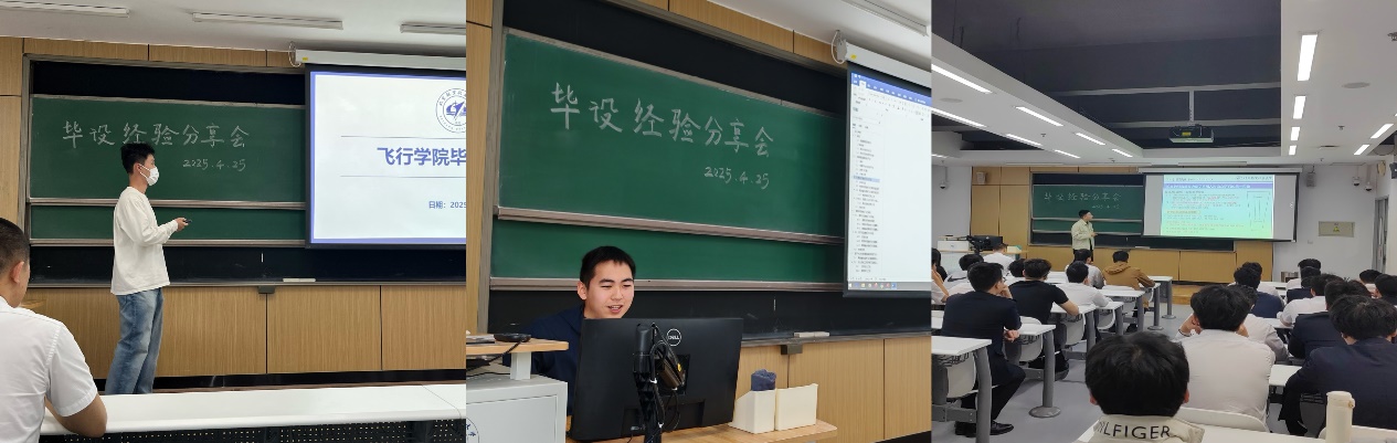 为进一步提升毕业设计整体质量,飞行学院高年级组于4月25日下午开展了毕业设计经验分享会。会议由高年级组辅导员吉陆主持,由辅导员朱向晖和首批研究生飞行学员林捷、黄兀镔主讲,飞行学院高年级毕业设计班全体学生参加。