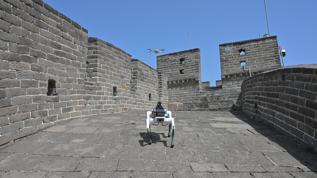 实验选择八达岭长城坡度陡峭城段以及长城的塔楼作为测试场景。机械狗凭借卓越的地形适应能力,在凹凸砖面、倾斜斜坡及断壁障碍中完成移动,同步完成雷达扫描与动态环境建模。其搭载的SLAM系统通过实时定位与地图构建,精准捕捉城墙细节,并生成三维模型。团队表示,该技术突破了传统测绘设备在非结构化地形中的行动限制,可显著提升野外文化遗产数字化保护的效率与精度。